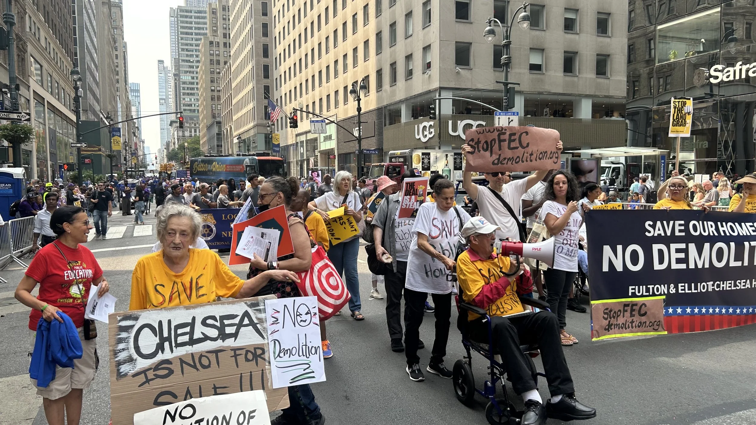 Fulton and Elliott-Chelsea Houses tenants opposed to NYCHA’s plan to demolish and “redevelop” their homes march in last weekend’s Labor Day Parade on 5th Avenue.